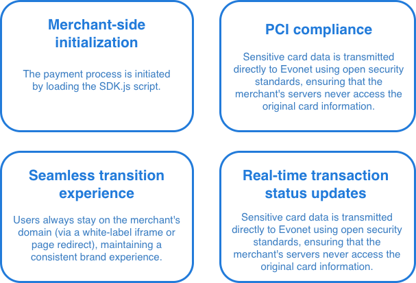 與 Evonet 的所有支付產品一樣,Drop-in 得到以下輔助服務的支持。詳情請參閱我們的產品方案或聯繫客服獲取更多資訊: